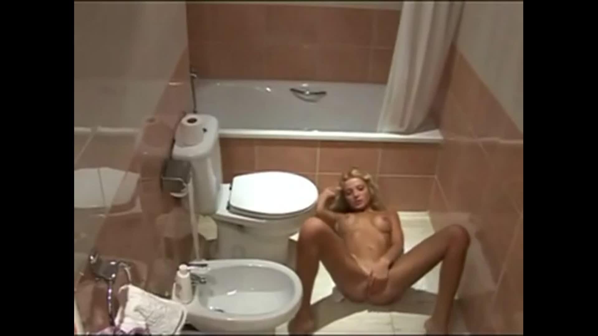 Девушка писает на унитазе