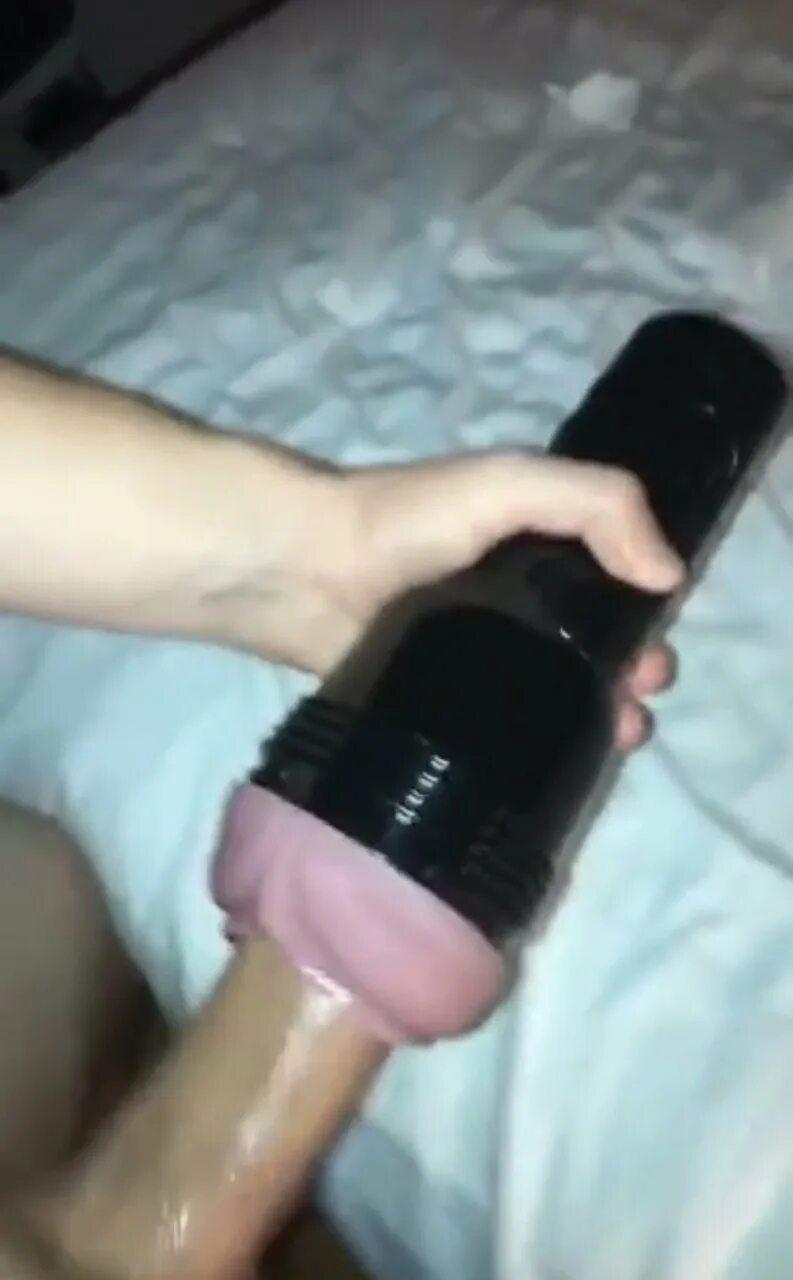 Дрочит член искусственной вагиной